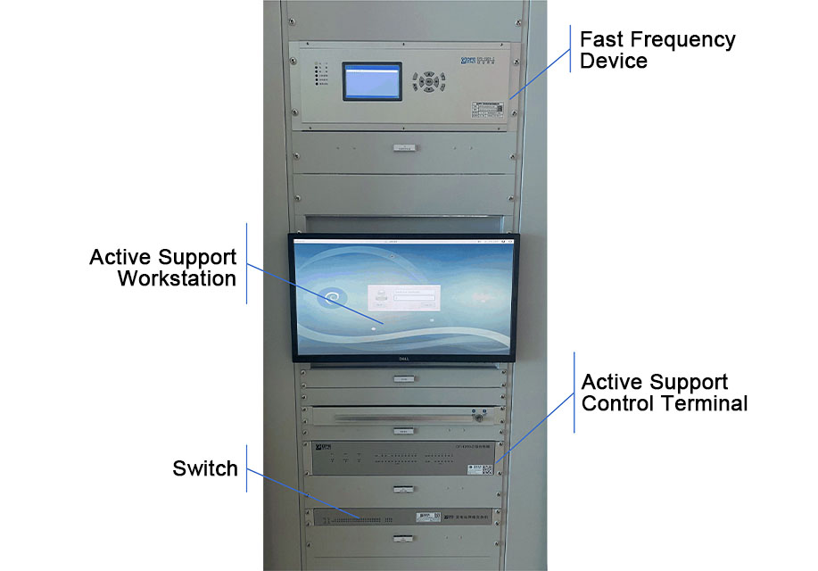 • The system primarily consists of three components: the active support control terminal, fast frequency device, and active support workstation.