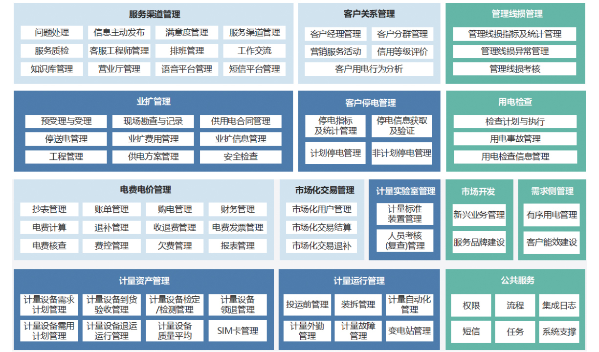 电力营销管理信息系统是针对电力企业营销业务构建的一体化、标准化、集约化、全闭环的数字化管理体系,涵盖组织管理、业务扩展、计量管理、电费管理、客户服务管理、稽查管理、需求侧管理等多业务模块,运用场景化思维,通过标准化建设模式,提高了业务开发速度,优化了系统使用体验,实现了营销业务横向集成、纵向贯通,保障了电费计算准确性,全面提升了营销管理的业务质量和服务水平。